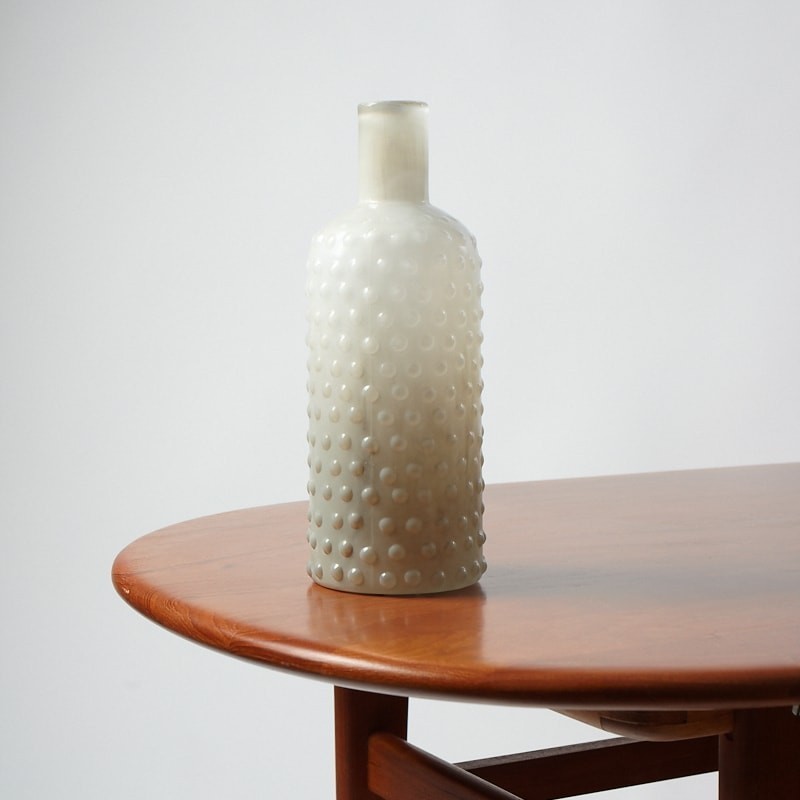 Jarrón de color gris con relieve de burbujas. Es de color pastel, muy elegante.